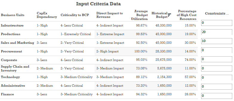 Organizations need to allocate budgets across their various cost centers in an objective fashion. Firms that deploy robust budget allocation mechanisms achieve optimal allocation of resources across the different areas of the organization, which in turn enables realization of cost management imperatives together with continuity in business operations & performance.
